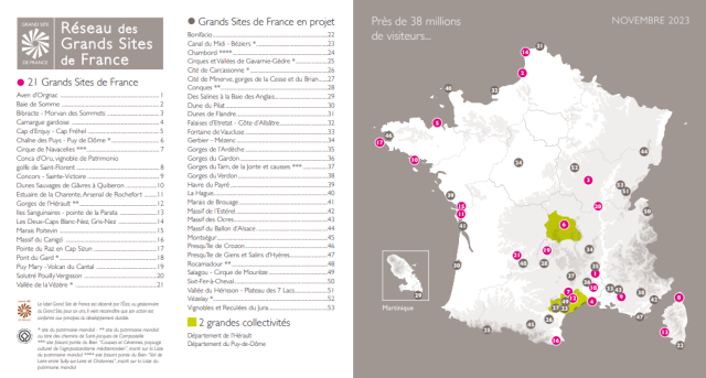 Créé en 2000, le Réseau des Grands Sites de France compte aujourd'hui 53 Grands Sites membres, qui accueillent près de 38 millions de visiteurs. Il rassemble des sites ayant reçu le label Grand Site de France et d'autres engagés dans des démarches de développement durable pour l'obtenir.